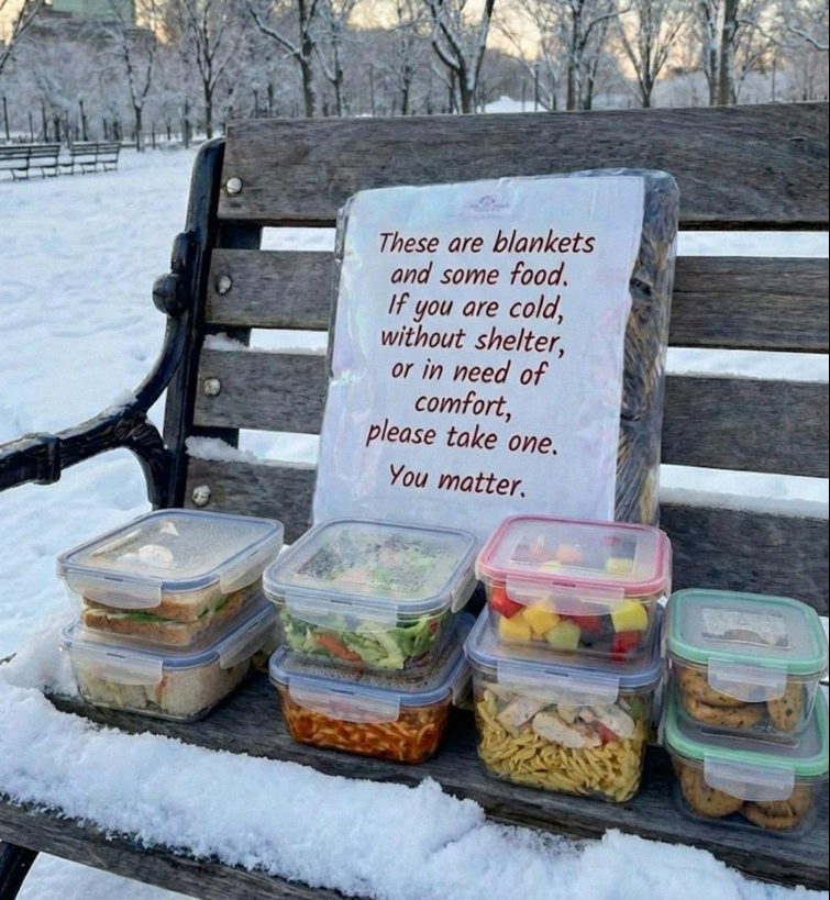 So one morning, after selling an old toolbox at a pawn shop for $25, Ethan stopped at a discount store. He bought three cheap fleece blankets, some canned soup, a loaf of bread, and a pack of hand warmers. He wrapped everything neatly in plastic bags and left them on the bench where the elderly man usually sat. He tucked a handwritten note inside.“These blankets are not lost. If you are cold, without shelter, or needing comfort, please take one. You matter.”