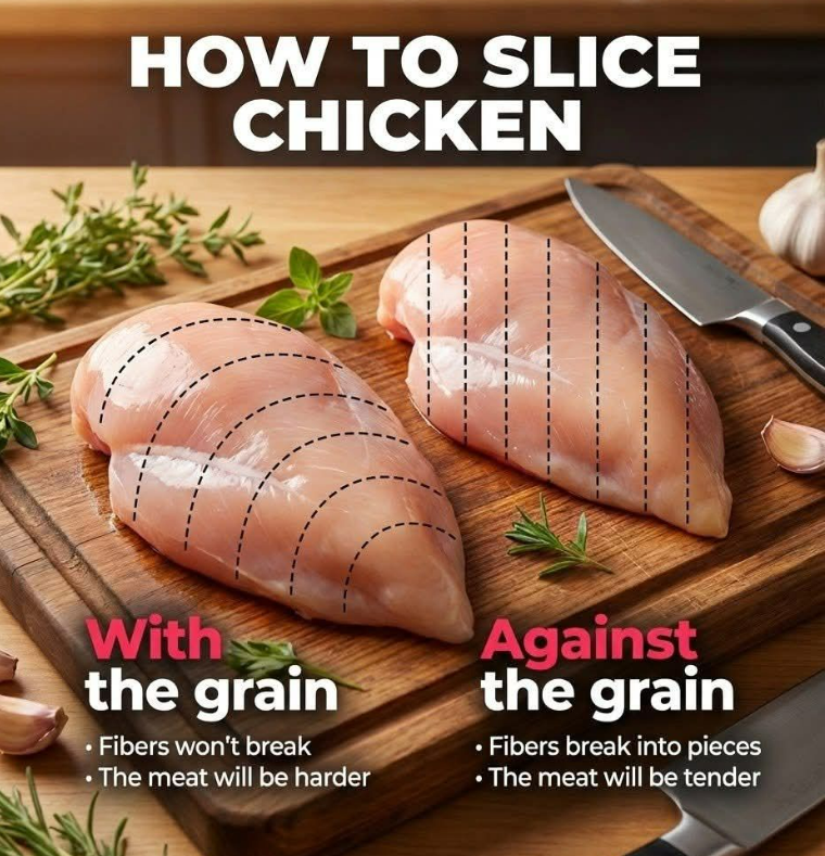 When it comes to chicken (and meat in general), how you cut it can completely change the texture of every bite. The key lies in understanding the “grain” of the meat.